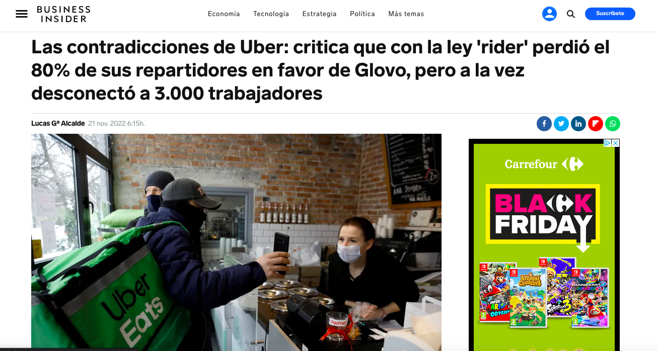 - RIDERS CONDEMN DELAY IN MAJOR GLOVO TRIAL IN MADRID: Former and current riders for Glovo have condemned a delay in the trial of the company in Madrid affecting 3,300 delivery people, saying the legal process is now set to take more than five years. The trial is now set to take place in November 2023, after the judge in the Social Court No.32 agreed to delay the trial due to lack of documentation, on the request of Glovo. The Spanish food delivery firm has lost well over 50 trials in Spain over false-self employment, each time having to pay social security contributions and back-pay to the workers. The Labour Inspectorate conducted the investigation into the company in 2018, with the campaign group RidersXDerechos stating: "More than 3,300 distributors will be waiting for five years for the judicial resolution. We call this justice?" Fernando García, a member of RidersXDerechos and rider with Glovo, said "“this procedure is judging the exact same company, the same period of time and the same model that the Supreme Court already judged and resolved in its 2020 ruling, with which neither more documentation nor more witnesses are needed." Read more here.