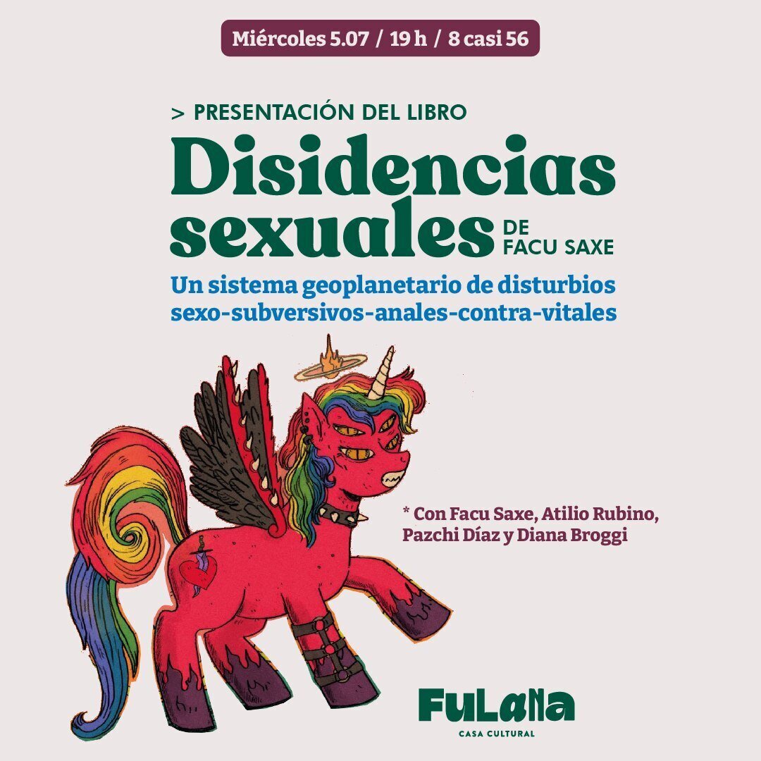 El nuevo libro de Facu Saxe no quiere decir ninguna verdad. Más bien está en contra de la idea de verdad y de la idea de autoridad. Esto, en algún sentido, construye una constelación-recorrido-deriva textual sobre algunas modalidades de lo que podemos llamar disidencias sexo-genéricas o disidencias sexuales, o también sobre lo que, en algunos ambientes universitarios y activistas, se etiqueta como teorías queer. Este libro se piensa desde la interrupción, y nos impele a detenernos y a dejar de mirar un sistema de conocimiento cisheteropatriarcal y pensar los modos poéticos y contrahegemónicos desde todos esos saberes que no nos dejaron enunciar.