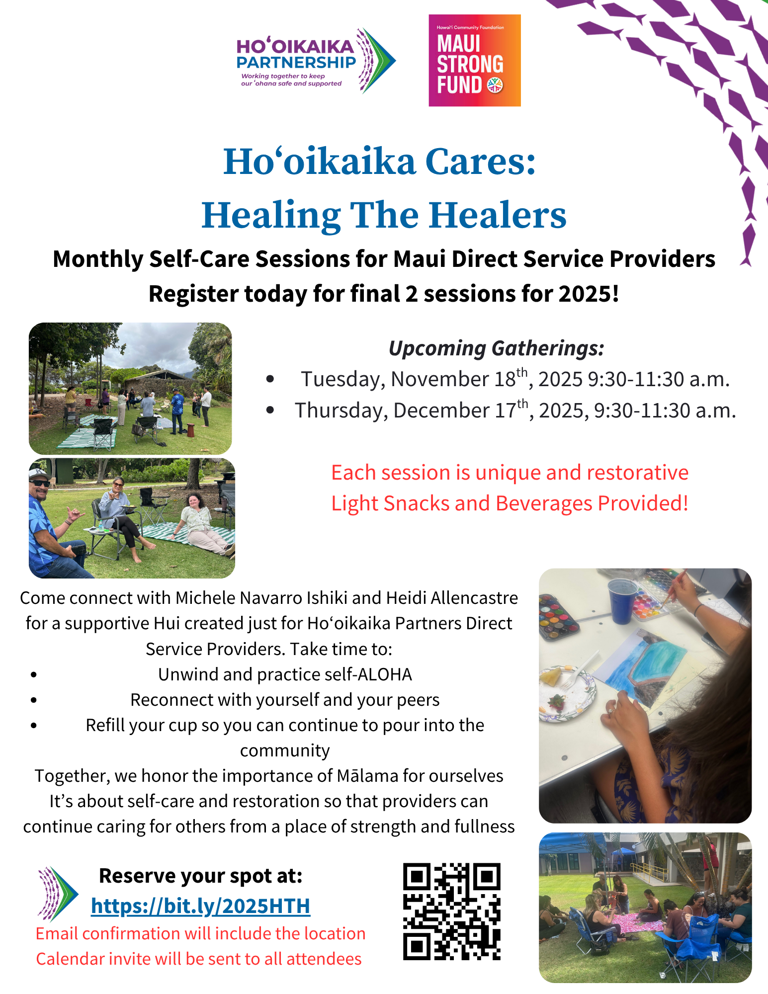Hoʻoikaika Partnership is grateful for the support of the Maui Strong Fund, which has helped sustain our coalition, Navigation Services, public education campaign, and Healing the Healers peer support groups.