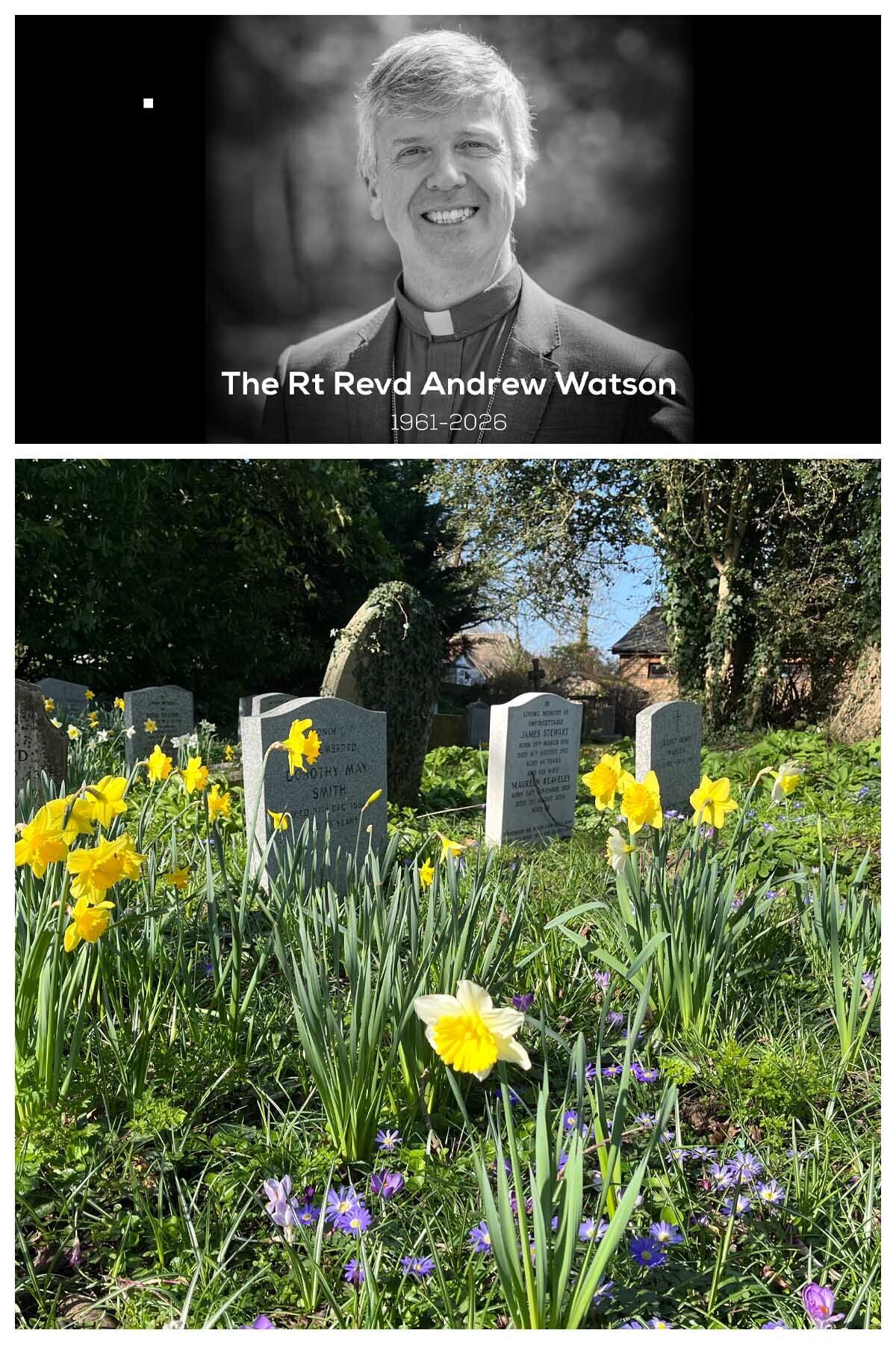 Many of you have already expressed your sadness at the news of Bishop Andrew’s death. In my email on Tuesday, I mentioned Bishop Paul’s letter. If you would like to read it, click here, or if you prefer to see Bishop Paul speaking it, click here. The photo above also includes an image of flowers in our own churchyard. So many people comment on the beauty of the churchyard at this time of year as well as how the brighter warmer weather lifts their souls. It seemed appropriate to combine the two images to remind us of that reality of which we are all aware: life is rarely just sorrow or joy but more frequently a mixture of both.