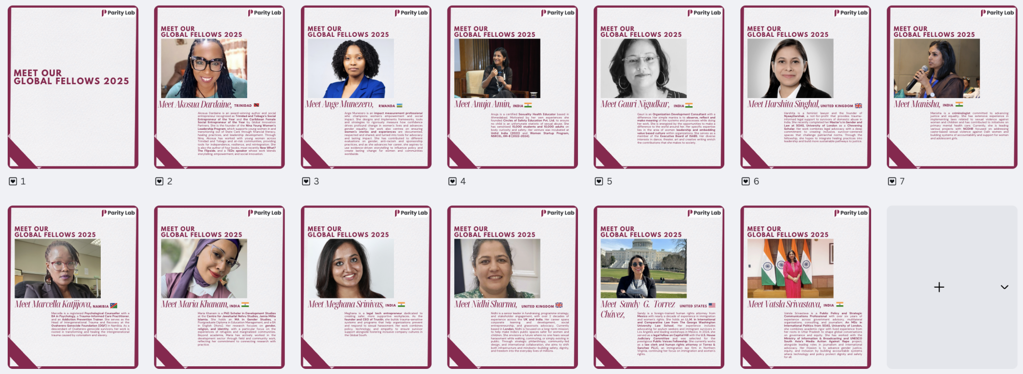 Global momentum is undeniable, yet the forces that clamp down on gender justice work are only intensifying. At this critical moment, Parity Lab hasn't pulled back, we've expanded, launching our largest Global Fellowship cohorts to date to meet this urgent need head-on.