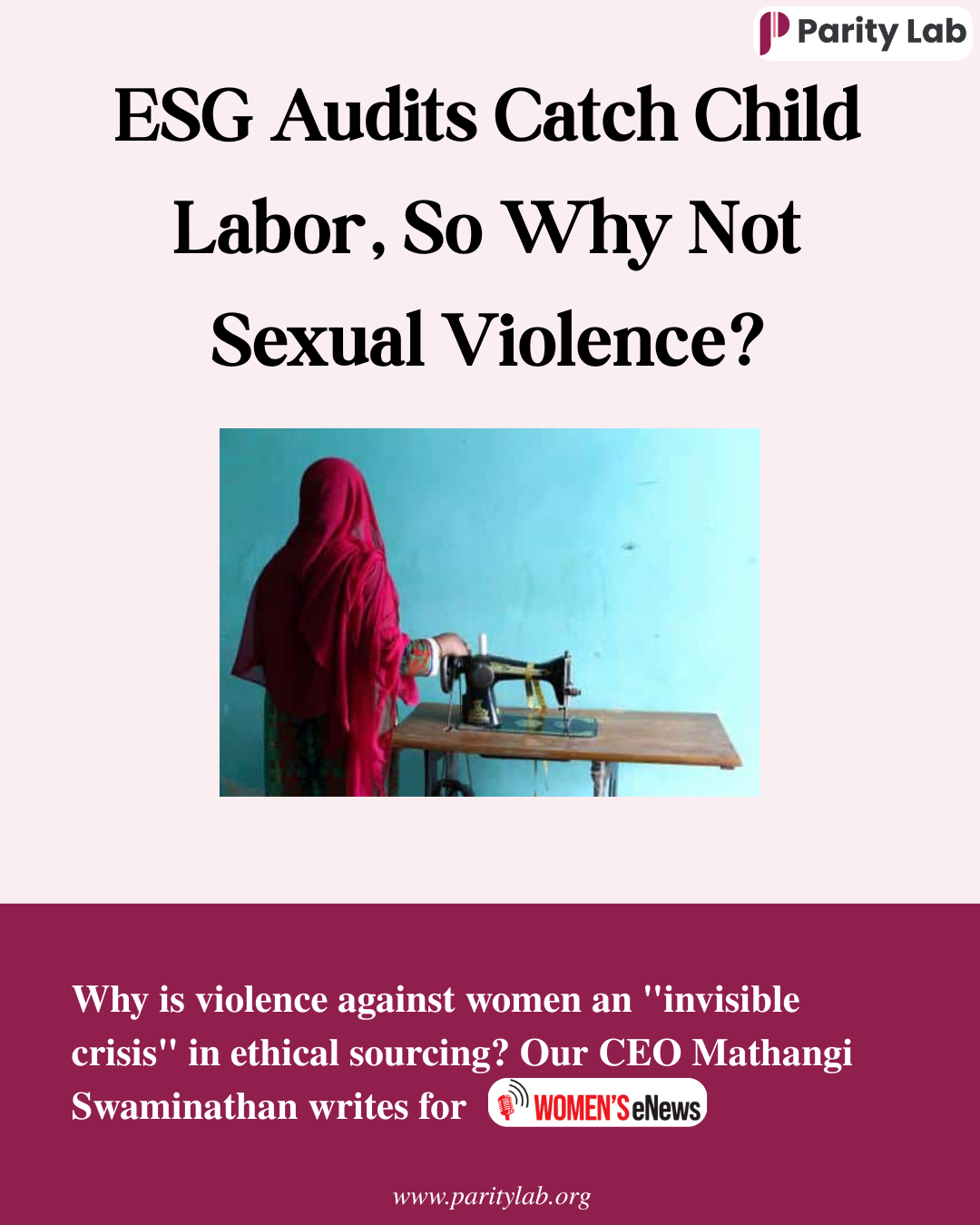 Mathangi contributed a powerful OpEd to Women’s eNews, directly challenging corporate social governance (ESG) standards that ignore gender-based violence (GBV). Auditors catch child labor, but consistently overlook gender-based violence leading to “industrialized abuse” like the shocking 36% hysterectomy rate faced by women in some supply chains. Our CEO argues: “No audit, certification, or ESG report is credible if it ignores more than half the workforce.”