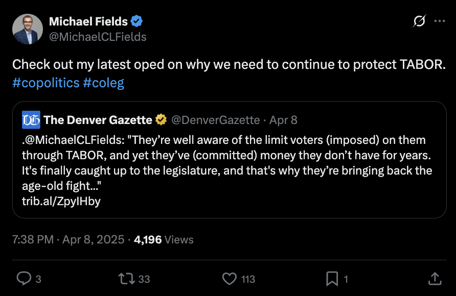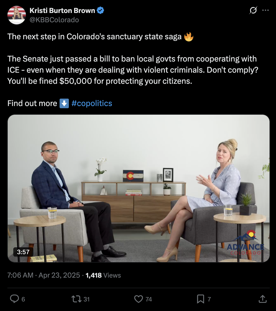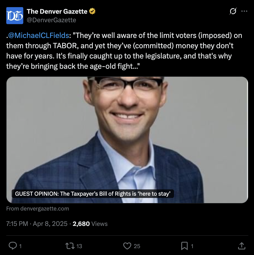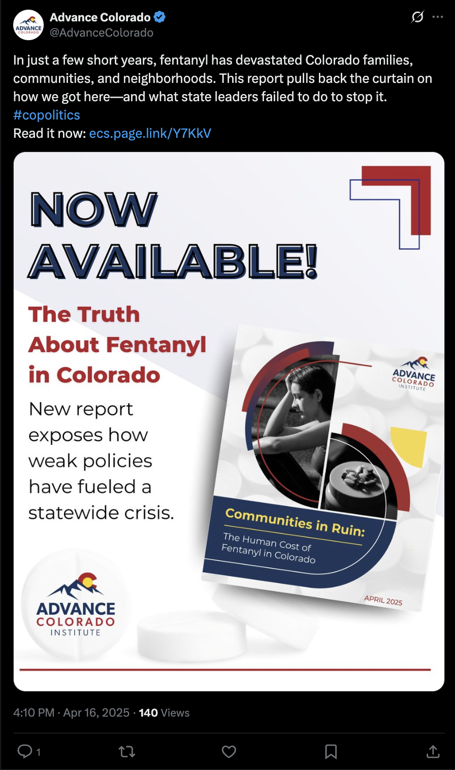 These two measures were sponsored by Advance Colorado in 2024, and we continue to work with law enforcement to pursue future measures to further public safety, especially in policy areas where the legislature refuses to listen to citizens and the law enforcement community.