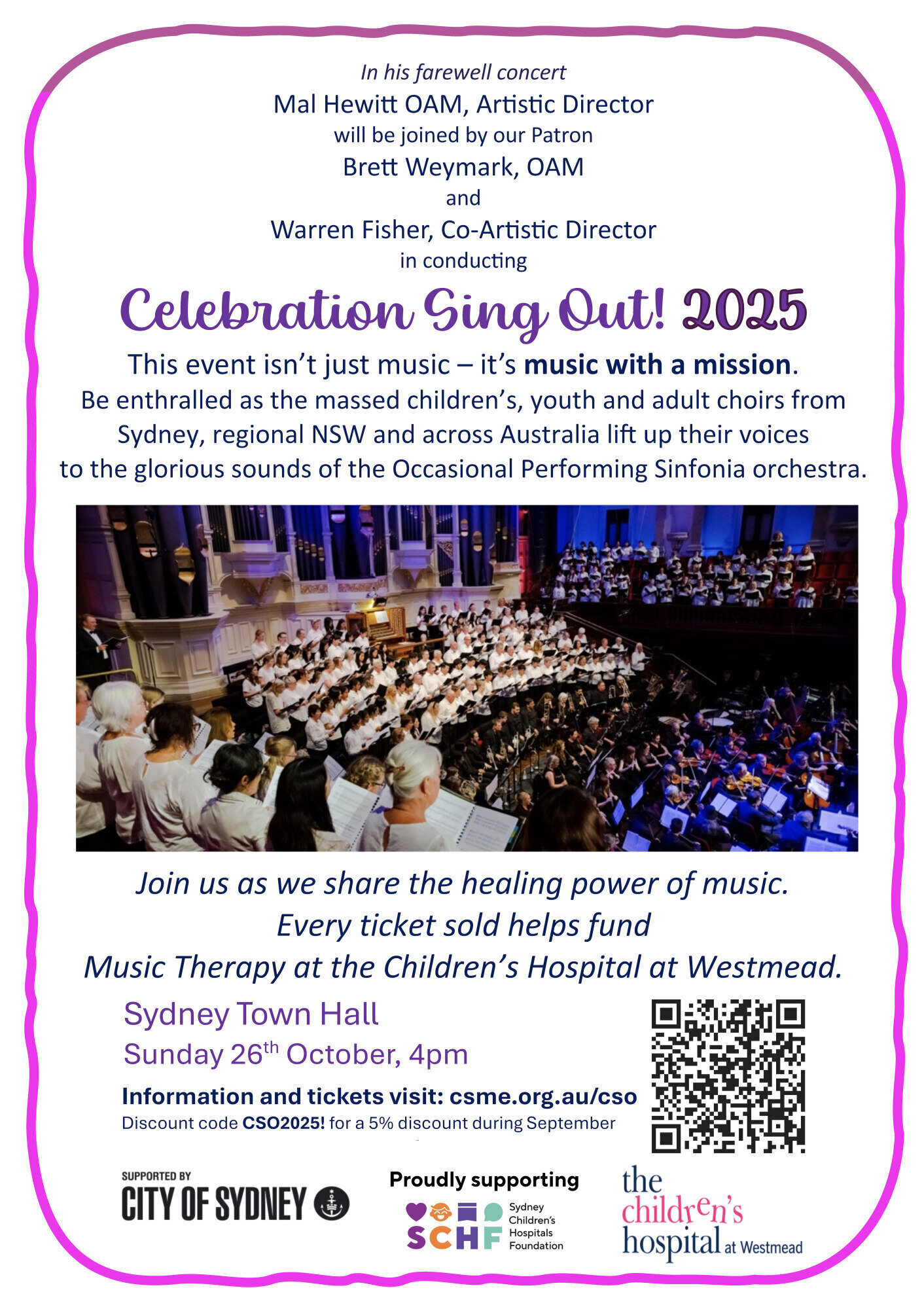 Our concert isn’t just great music – it’s great music with a mission. Every ticket sold helps fund Music Therapy at the Children’s Hospital at Westmead, giving comfort and healing to very sick kids throughout the year.