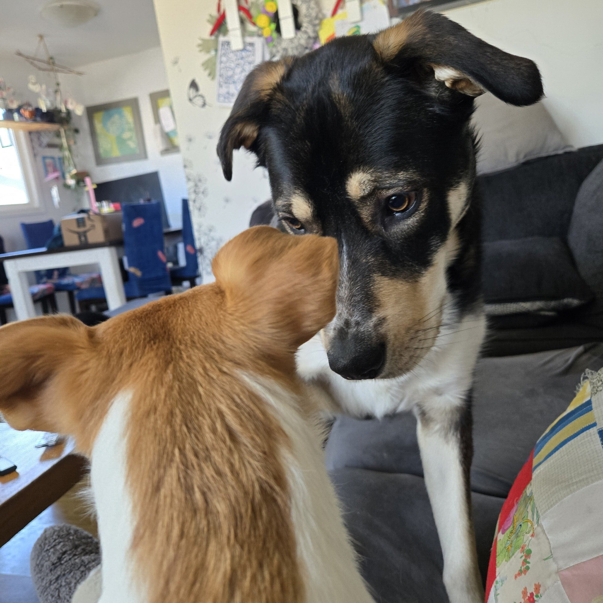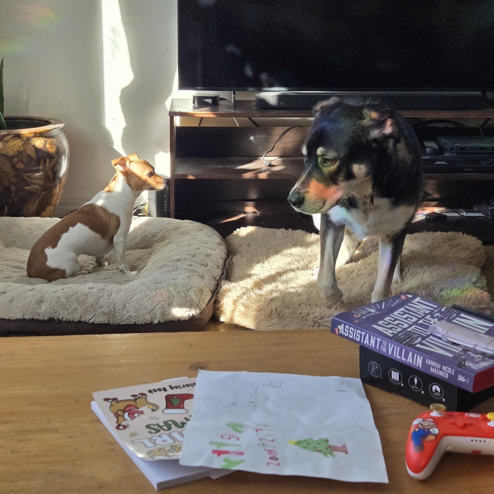 Alan, despite being approximately one tenth the size of Mina, managed to take control of the house. We have three giant dog beds and at one point, Alan had all three to herself, while Mina and Rocky took refuge elsewhere. Okay, they didn't really take refuge. Rocky was sleeping his afternoon away, as he usually does. Mina was confused why Alan didn't want to play tug of war with a rubber chicken so she was pouting.