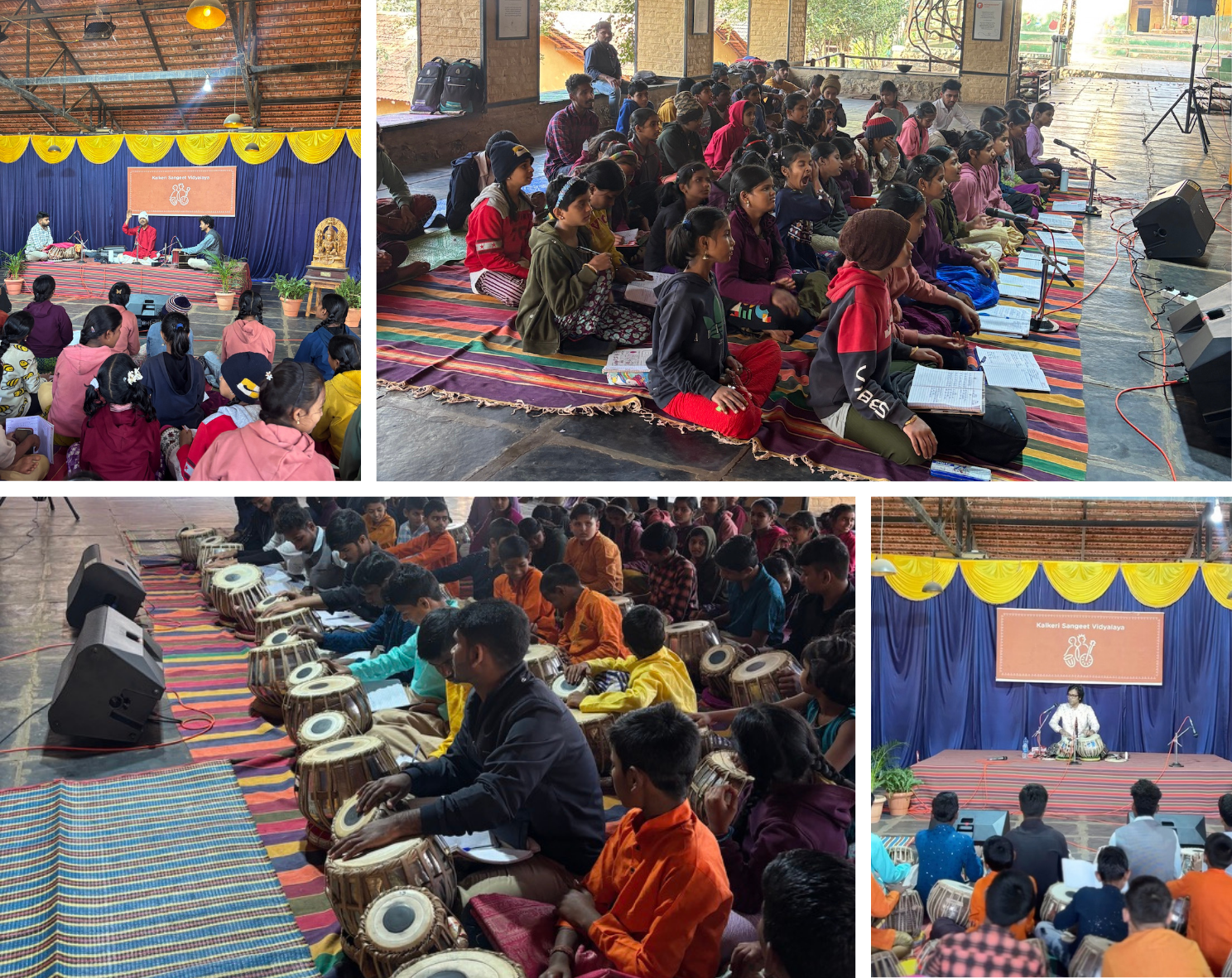 The support of the EdelGive Foundation has also brought music professionals from across India to KSV's campus to help teach and train our students 🎶. In December, we hosted a 2-day tabla workshop with Pandit Rupak Bhattacharjee 🥁. The workshop gave our students the opportunity to perform and learn from one of the greats 🎤. KSV also hosted a 2-day vocal workshop with Pandit Kumar Mardur 🎼.