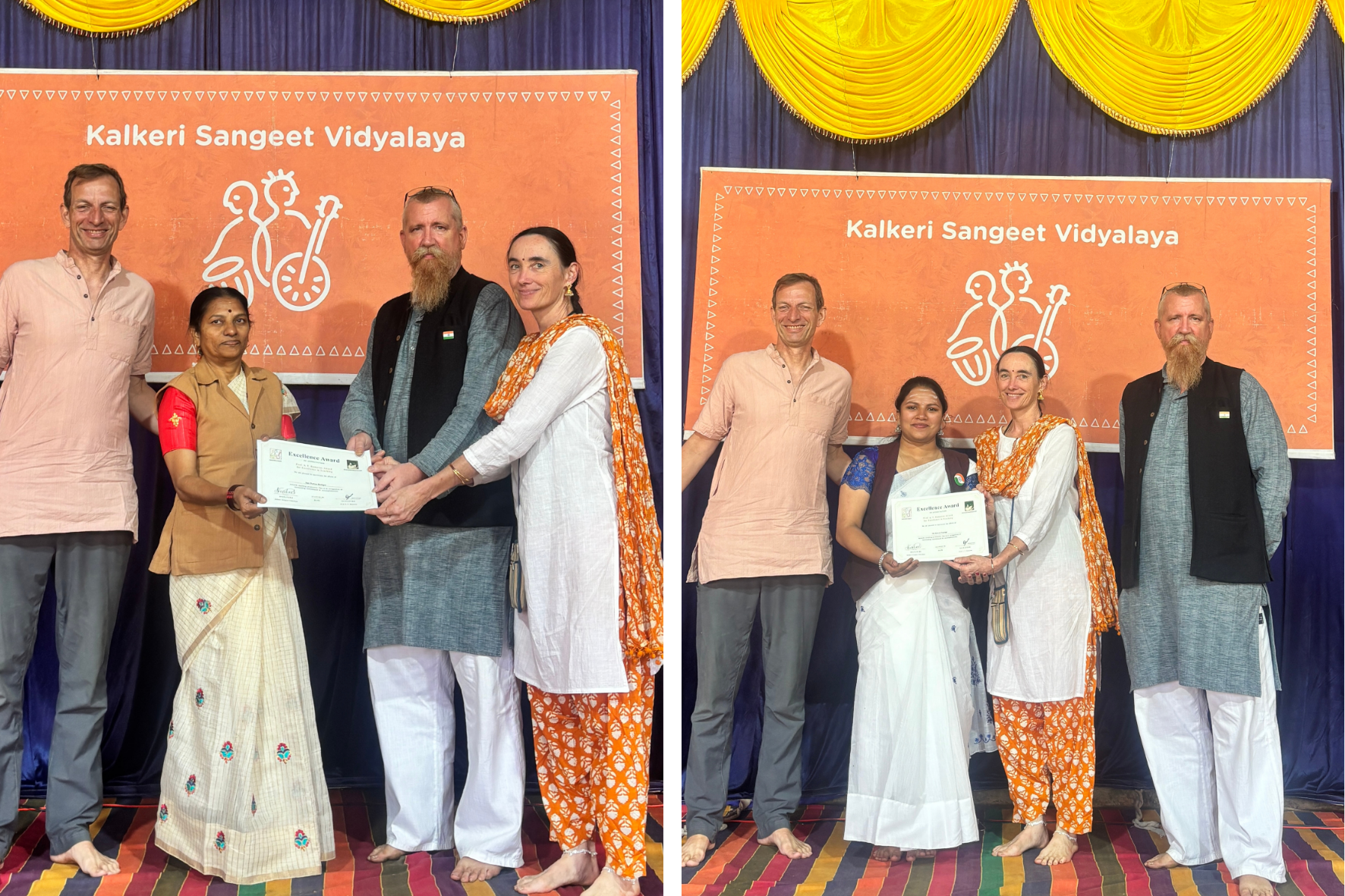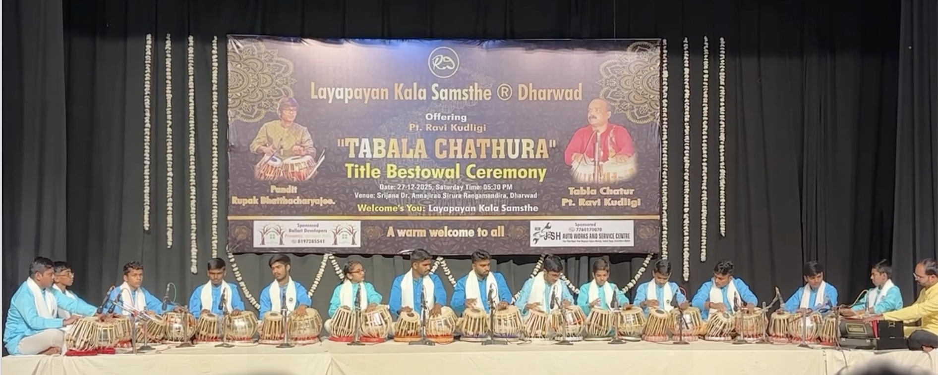KSV staff and alums also hosted and attended a program in Dharwad on December 27th honouring the life and legacy of former tabla teacher Pandit Ravi Kudligi 🎵. This program began with a group of young tabla artists performing, including KSV students 🎶. The ceremony also included the bestowal of a title on Rupak Bhattacharjee, who hosted a tabla workshop at KSV on December 25th and 26th 🥁.