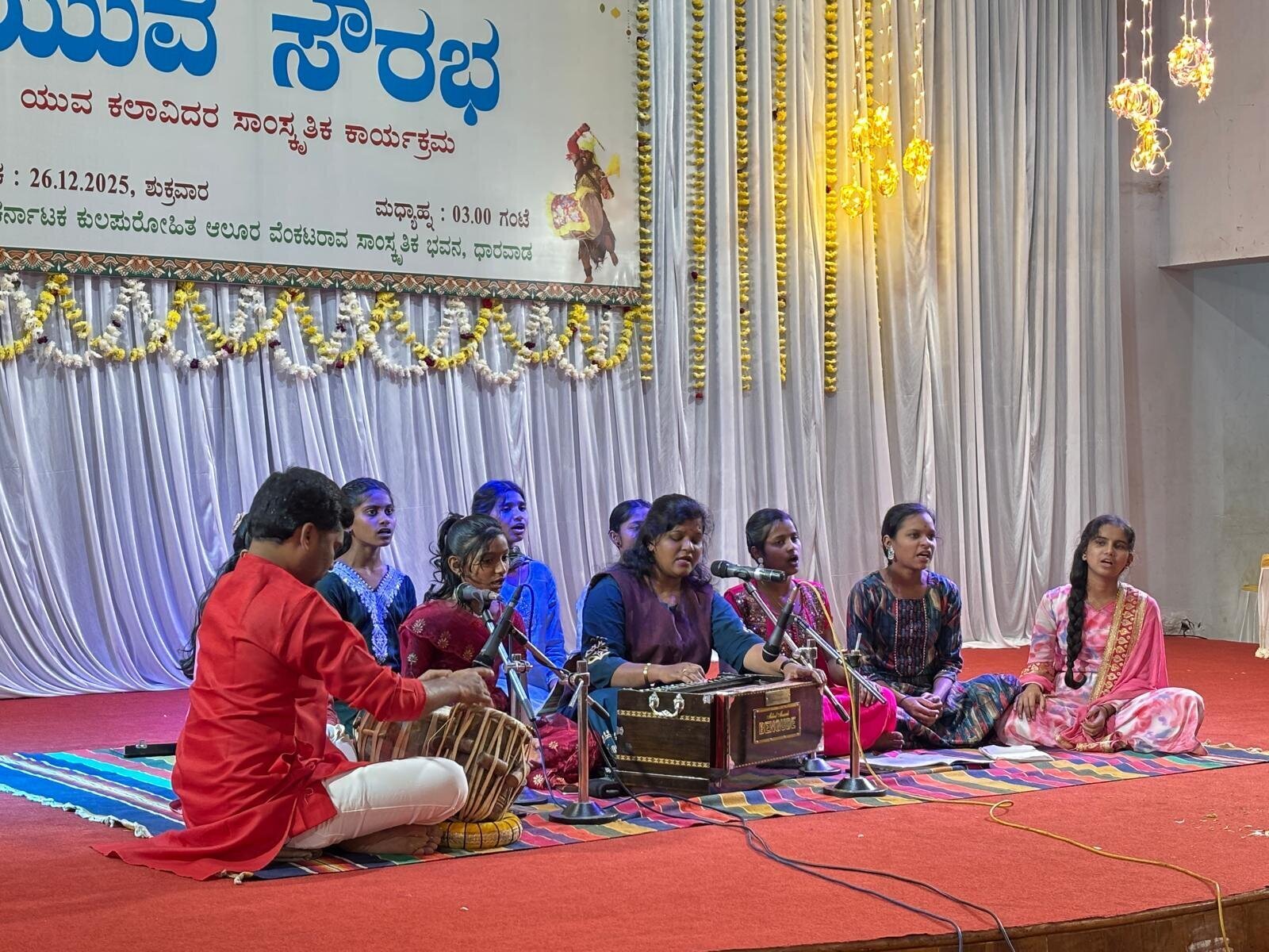 In December, our vocal students had the opportunity to perform at the Children's Academy Silver Jubilee Ceremony in Dharwad 🎉. Led by vocal teacher Sukanya Pattar, our students performed for a packed audience! 👏 She also led a performance for the Department of Kannada and Culture's Young Souraba Program in Dharwad 🎤.