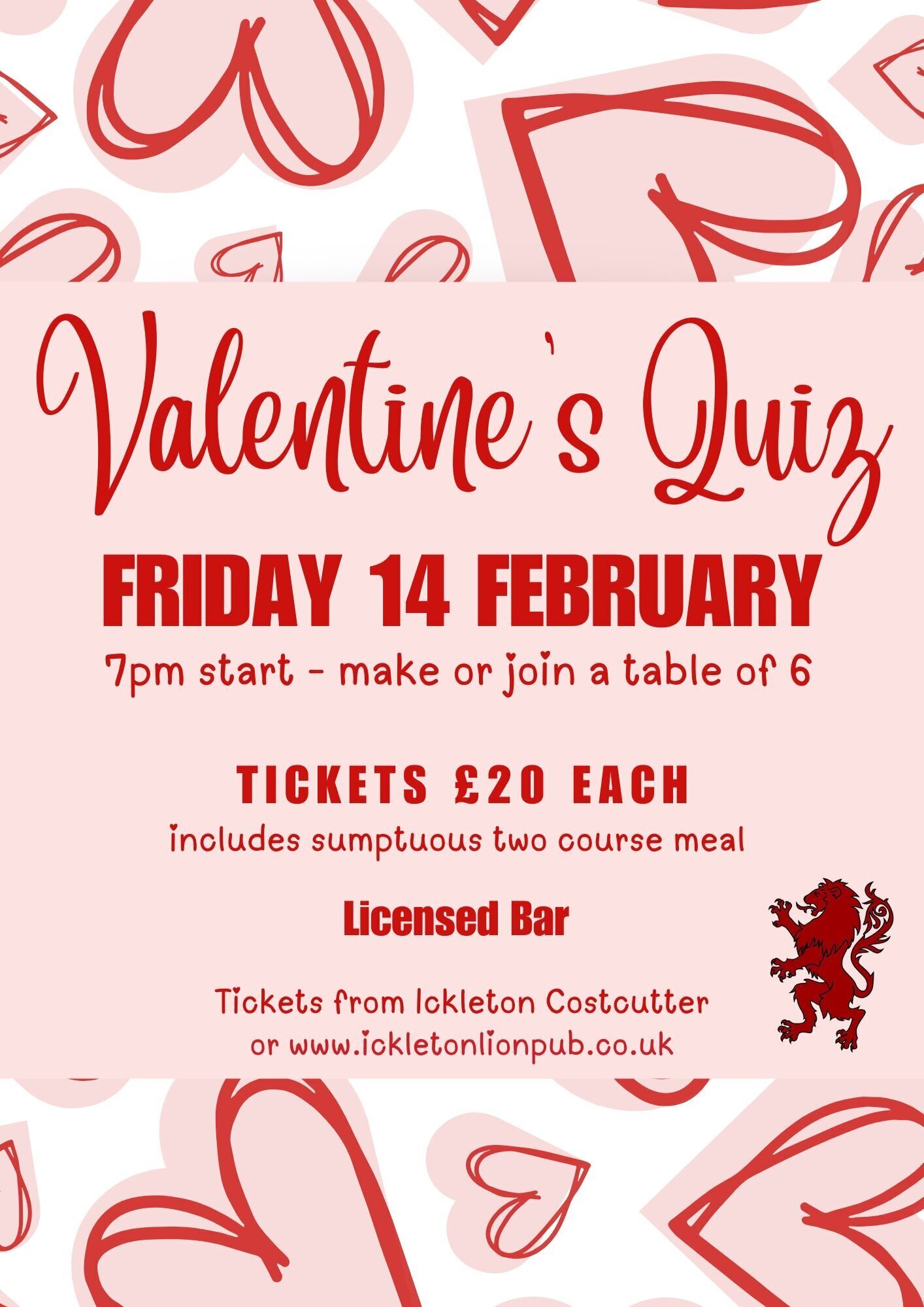 Our next event is a Valentine's themed Quiz on 14th February, featuring the return of our brilliant guest chef, Derek. His fabulous lamb curry stole the show at our Curry Night in September, so we are eager to see what delicious creation he’ll serve up this time!