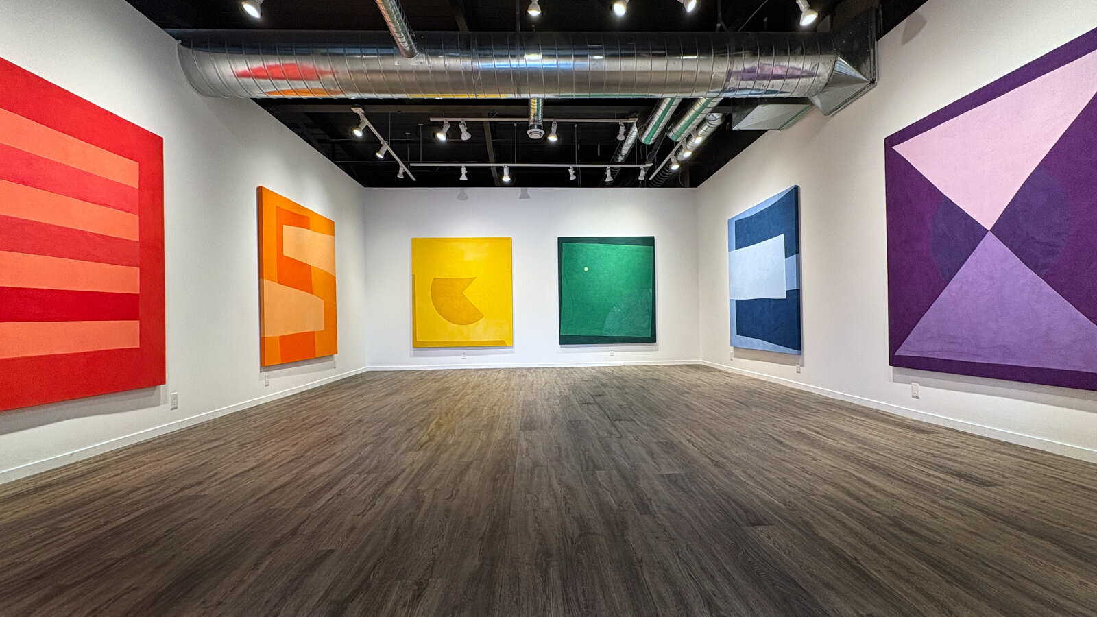 Stories of belonging by Colleen Heslin is an installation of six hand-dyed, sewn monochrome abstract paintings that explore colour theory and queer pride. Each work reflects on progressive stages of spiritual, emotional, and psychological awakening brought on by social disconnection and generational dysfunction within western culture. These paintings echo shifts towards presence and self-awareness, from unconscious to consciously bringing attention to subtle nuances within colour spectrums.