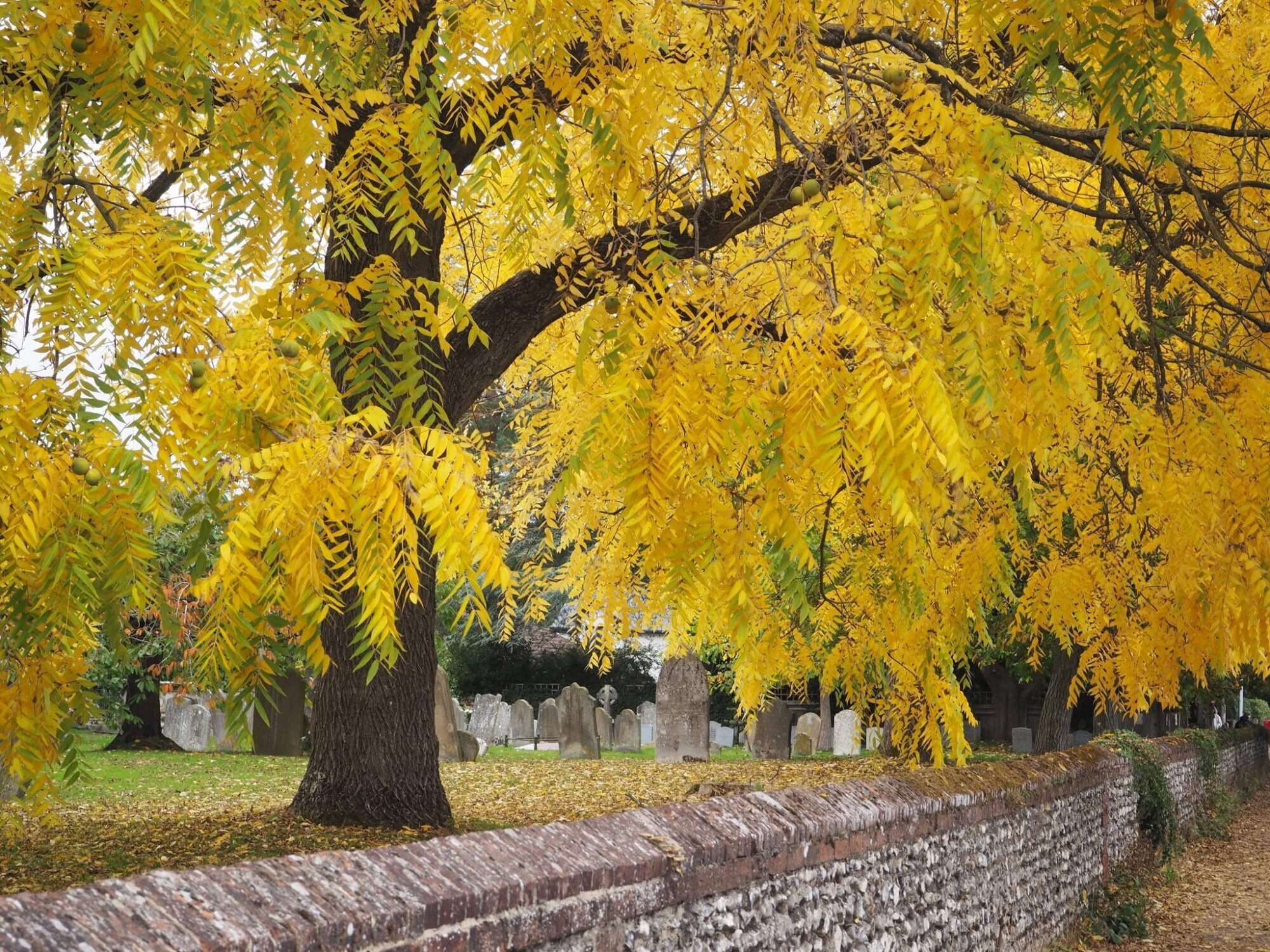 I am very grateful to Monica Weller for this lovely photo of our churchyard taken a few weeks ago. As Monica says, “It’s a sensational tree bringing light to the crossroads.”