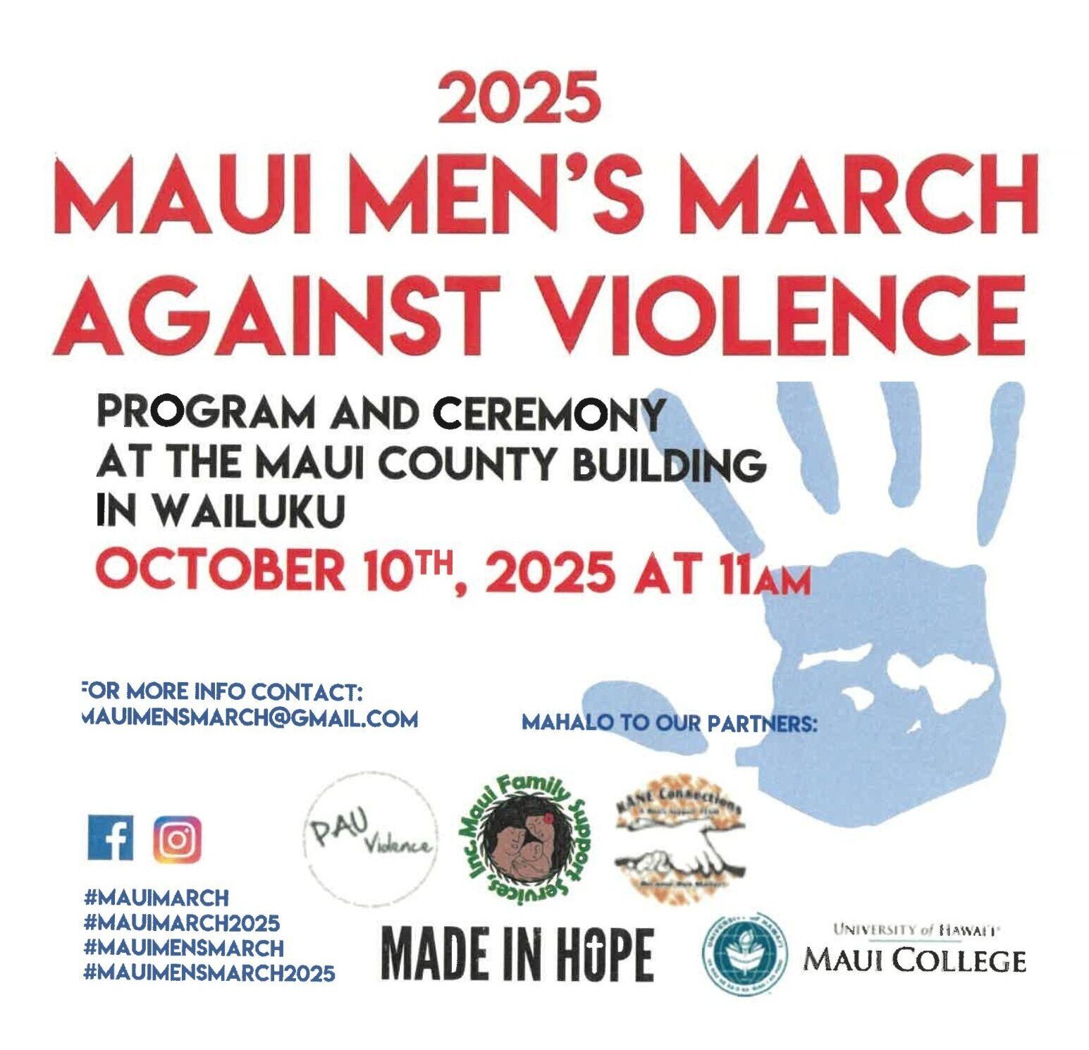 Hoʻoikaika Partnership recognizes the critical role health and human service professionals play in prevention, early intervention, and healing. Together, we can strengthen protective factors, foster supportive relationships, and help break the cycle of violence. We encourage you to use this month to share DVAM information with clients, post resources where families can see them, and uplift messages of safety and respect. Please join us in solidarity on Friday October 10th for the Men’s March Against Domestic Violence Ceremony and Program at the County Building in Wailuku (200 South High Street) beginning at 11 am. Bring colleagues, wear purple, and help amplify the message that we stand with survivors and for violence-free homes. RSVP below.
