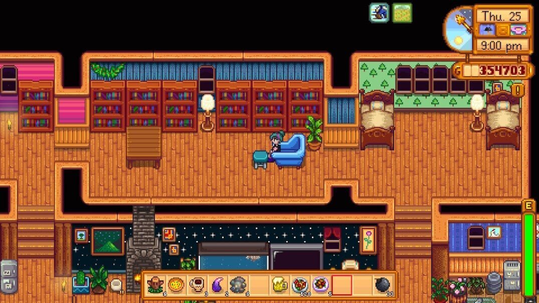 Even in Stardew Valley, I'm obsessed with books. Check out my library.