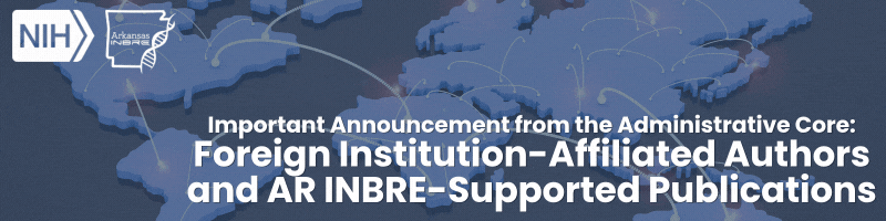 What this means for the Arkansas INBRE is that for any publication that cites the grant (NIH P20 GM103469), there can be no authors that have an affiliation with a foreign institution. Since we expect recipients of funding (whether that funding is a research grant, pilot grant, core facility voucher, summer manuscript support, mini-sabbatical) from the Arkansas INBRE to cite the grant in all publications arising from that support, not citing the grant is not an option.