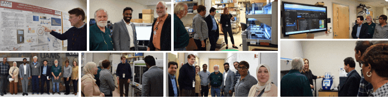 EPIIC Core Facilities Tour at UAMS On March 23, faculty and staff from the University of Arkansas at Pine Bluff (UAPB) and Arkansas Tech University (ATU) (both partner institutions in the Arkansas INBRE) visited the IDeA National Resource for Quantitative Proteomics (led by Alan Tackett) and the Genomics Shared Resource (led by Donald Johann) at UAMS. The institutions share a National Science Foundation (NSF) grant entitled “Collaborative Research: Enabling Partnerships to Increase Innovation Capacity (EPIIC): Bolstering University Infrastructure for Leading Development (BUILD). Dr. Emad Badradeen, research assistant professor of chemistry and physics at UAPB is the principal investigator. Other members of the visiting team were Dr. Vinay Raj (UAPB), Dr. Newton Hilliard (Arkansas Tech), Dr. Robin Ghosh (Arkansas Tech), Dr. Jyotheeswaran Panapakan (Arkansas Tech), and Ms. Melanie Ewing (Arkansas Tech). The purpose of the visit was to facilitate meaningful connections between BUILD-supported investigators at UAPB and Arkansas Tech with the UAMS core facilities.