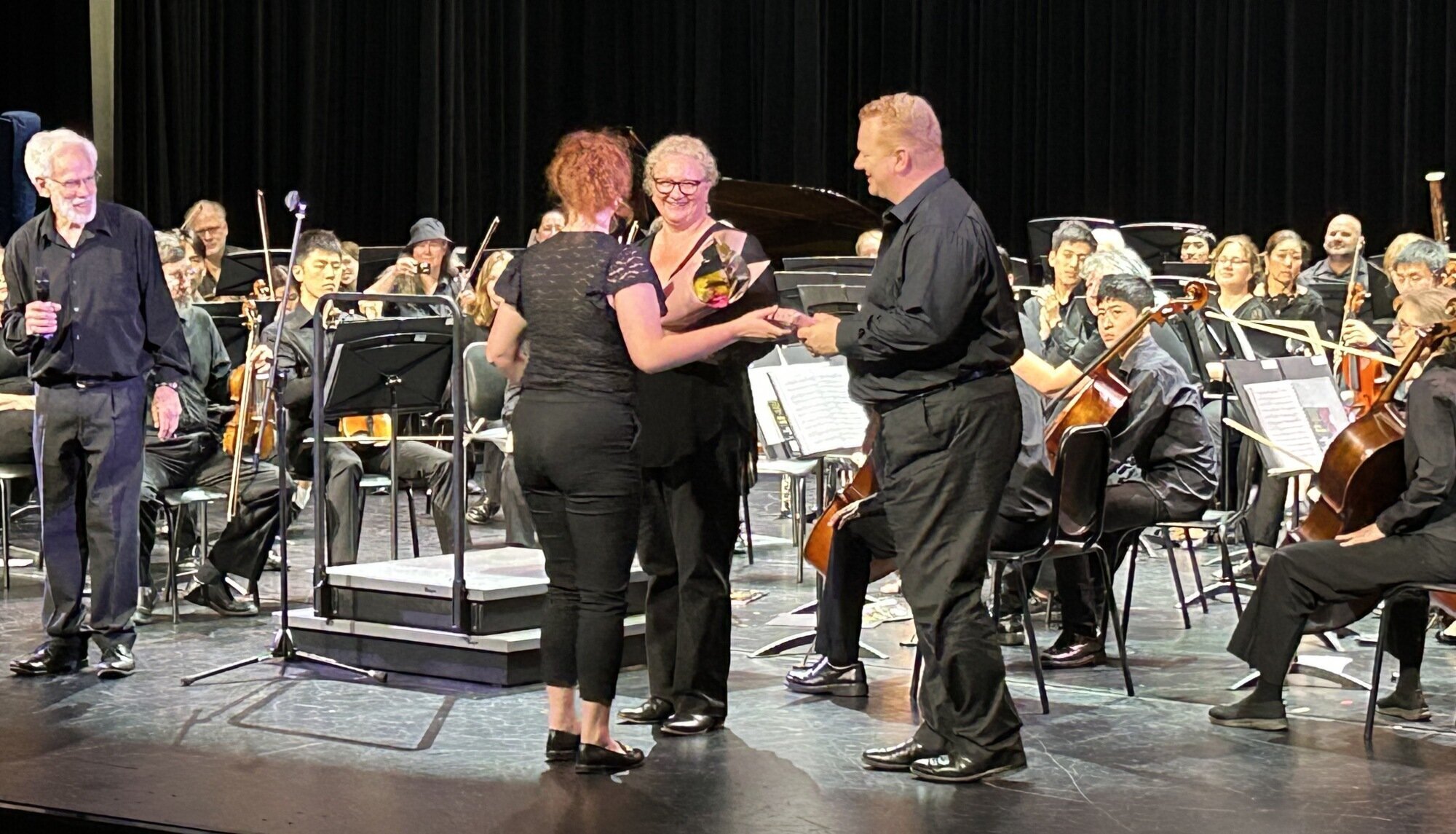 Presentation to the conductors at the conclusion of the TOPS concert. (L - R) Mal Hewitt OAM, Fiona Lucas and Warren Fisher.