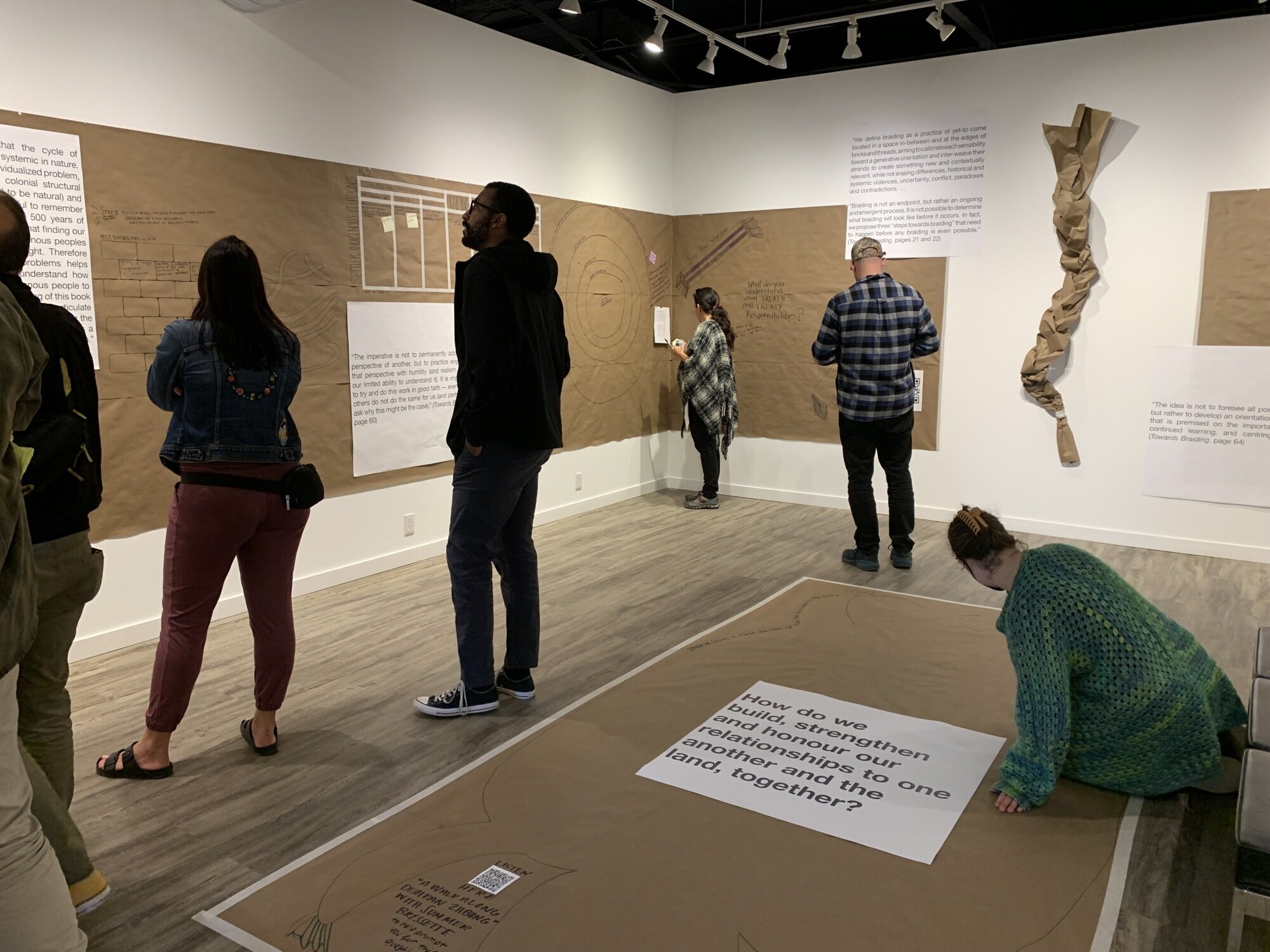 Our interactive exhibit and conversation series continues! FCG invites Londoners to reflect on their roles and responsibilities as Treaty People, and collectively dream of anti-colonial futures together using Towards Braiding by Vanessa Andreotti and Elwood Jimmy as our guide. This series serves as an entry point for anyone curious—or actively working towards—decolonizing art, institutions, as well as arts and education, broadly. A highly participatory exhibition event, visitors to the gallery are invited to reflect and contribute to the conversation on the literal walls of our space.