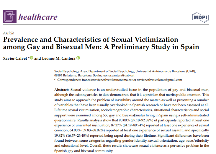Hace unos meses os pedíamos que participarais en una encuesta organizada desde el Grupo de investigación VIPAT, de la Universidad Autónoma de Barcelona (UAB), sobre violencia sexual en hombres no heterosexuales, y gracias a vuestras respuestas, los resultados obtenidos ya se han publicado. Un total de 1220 personas de toda España pudieron participar en el estudio, entre las cuales hay un total de 690 hombres gays y bisexuales, cada uno con sus vivencias particulares. Aproximadamente uno de cada cinco participantes ha sufrido una violación en algún momento de su vida, ya que existen tipos de violencias más sutiles que están normalizadas en el colectivo. Se han constatado, por ejemplo, diferencias en los datos según algunas variables sociodemográficas, por lo que los hombres no blancos, los trans, los bisexuales, aquellos que tienen un nivel más bajo de estudios y los más jóvenes tienden a sufrir más situaciones violentas. Se trata, sin duda, de unos datos alarmantes y que es necesario abrir el debate sobre la violencia sexual en el colectivo de hombres gays y bisexuales y sobre las relaciones de poder que podrían provocar y mantener estas situaciones. Es necesario apoyar a las víctimas, que se encuentran en una situación complicada porque se trata de un tema muy invisibilizado y es muy común que tengan dificultades para compartir sus experiencias.
