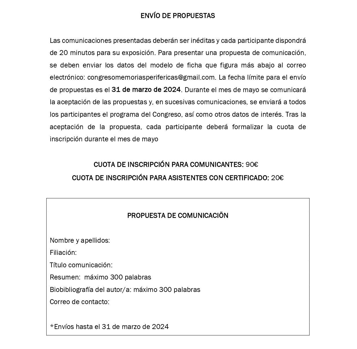 - Para publicar las comunicaciones en el programa, será necesario que al menos una persona que firma la comunicación se registre en el congreso y satisfaga la cuota de inscripción.