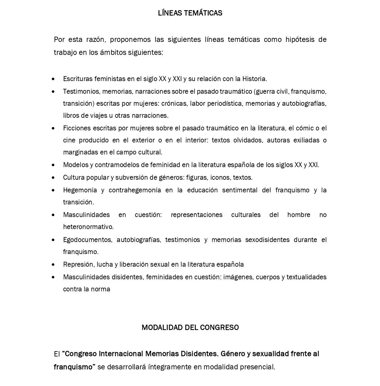 Congreso Internacional: Memorias Disidentes. Género y sexualidad frente al franquismo