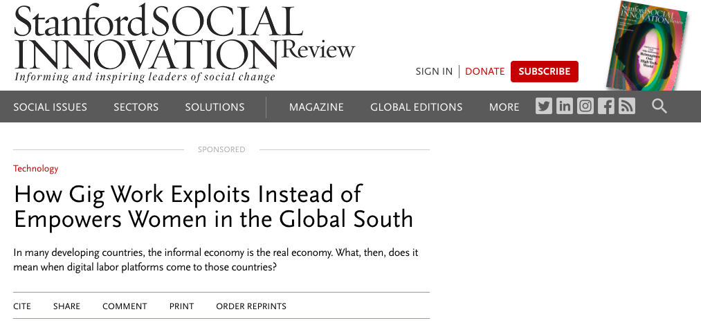 and platforms seek each other out in order to survive and get ahead". Equally, broader social relationships, such as kin networks and neighbours, act as an informal economy of "reciprocity and solidarity" for gig workers surviving on the margins, as well as "mutual aid" in the context of theft and violence. From the perspective of platforms, there is a need to interrogate "how and why a business