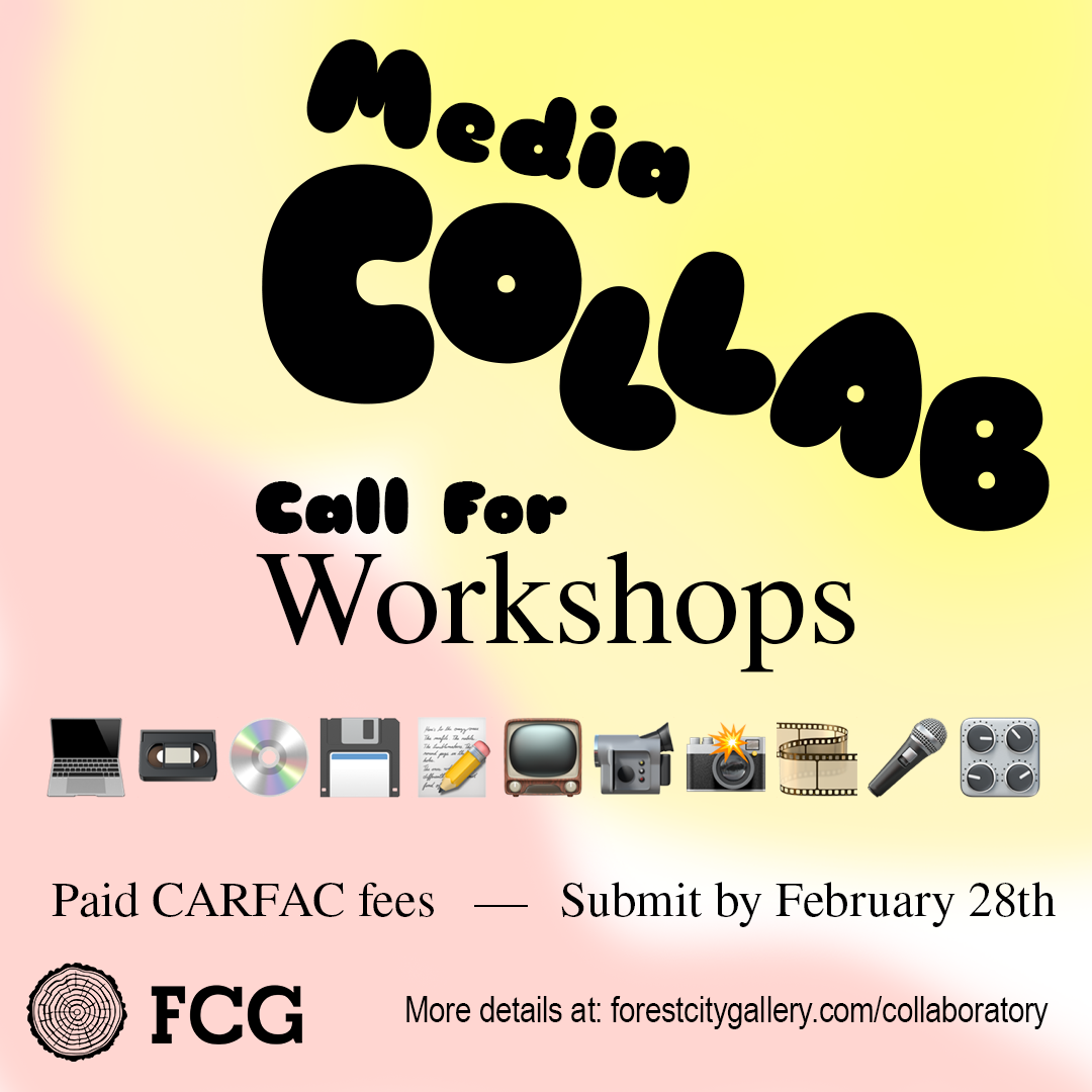 We are seeking proposals for Workshops that address themes of professionalization, skill-building, community gathering OR Workshops that investigate technological tools, interdisciplinary and experimental approaches to new media and emergent technologies. Workshops are paid in accordance to CARFAC fees.