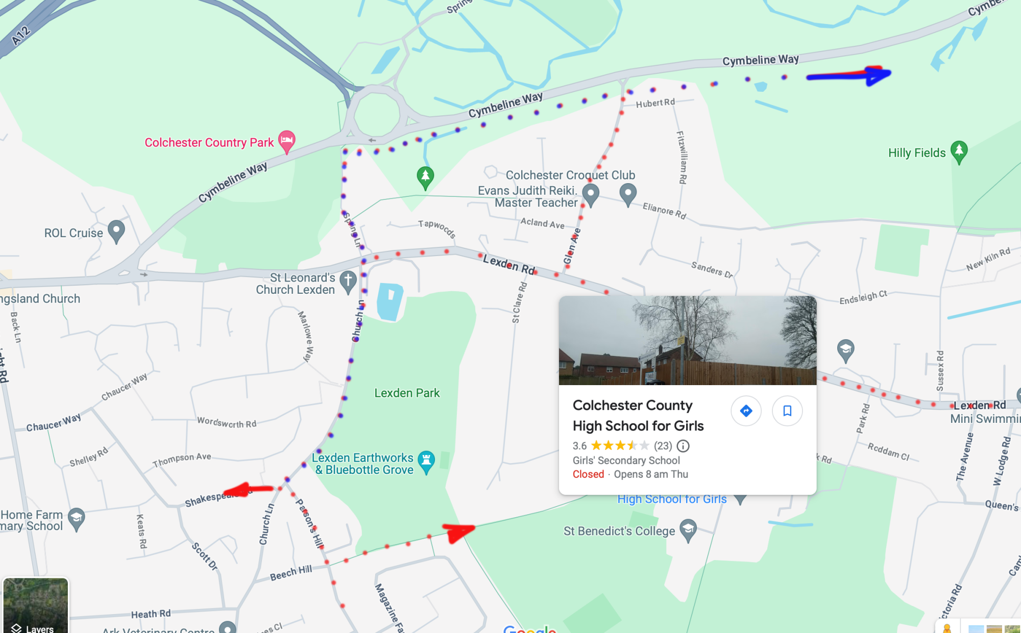 Church Lane usually suffers from being a rat run for fast motor traffic between Prettygate and Lexden Road.
