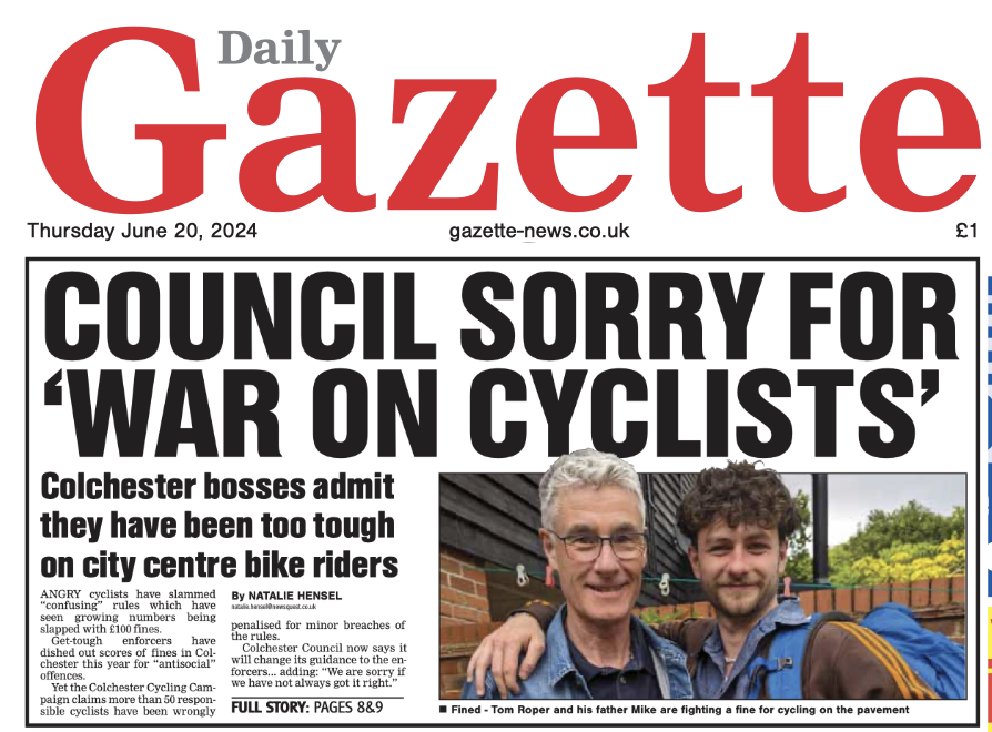 The other story is about PSPO fines. We understand that Wise, Colchester council's warden agency, is fining cyclists again although we've yet to receive any complaints. Councillor David King is due to meet us to discuss the situation on Thursday. Interestingly Birmingham Pushbikes is protesting about a similar move in their city. We'll keep you in touch.