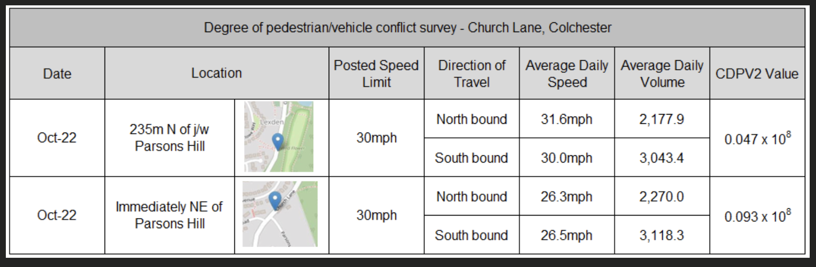 Sue Lissimore, county councillor for the area, has forwarded the data for the most recent speed check. In the campaign's view, an average of 32mph is way too fast but some Essex officers are offering their usual platitudes as to why they shouldn't take action.