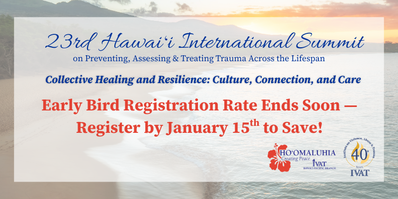 The Institute on Violence, Abuse and Trauma (IVAT) Hawaiʻi Summit is a multidisciplinary gathering of professionals working together to address the major issues in fields dealing with violence, abuse, and trauma. International and local speakers come together to share their findings on causation, prevention, treatment, and rehabilitation at both the global level and at smaller, community-based levels.
