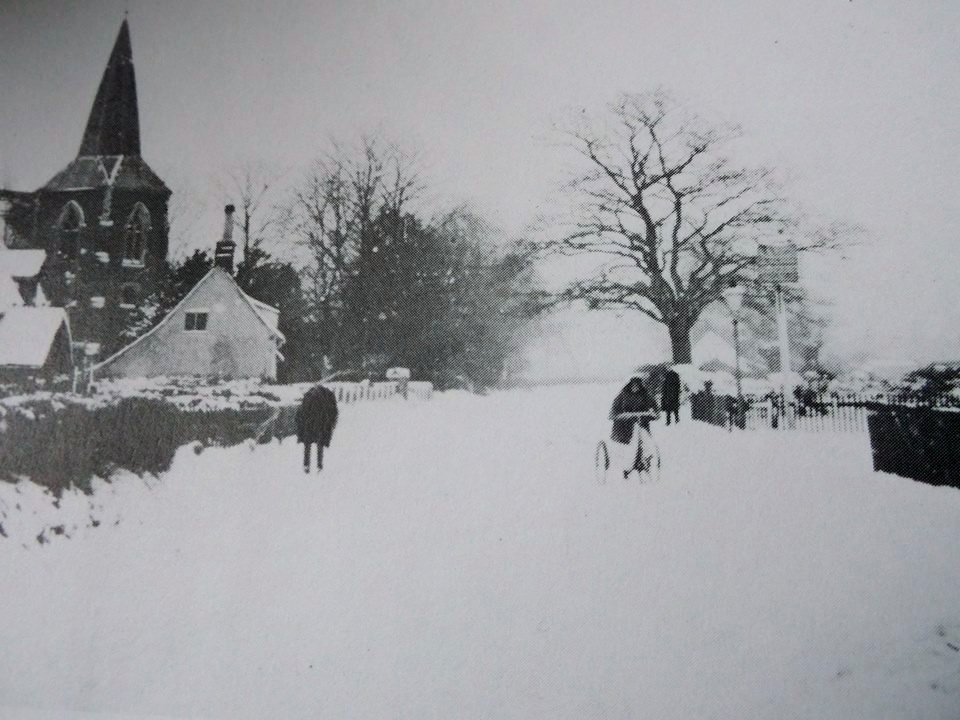 This intrepid tricyclist was probably struggling through the snow to the nearest shop for groceries ... or perhaps they'd just left the Leather Bottle pub and needed three wheels to stay upright.