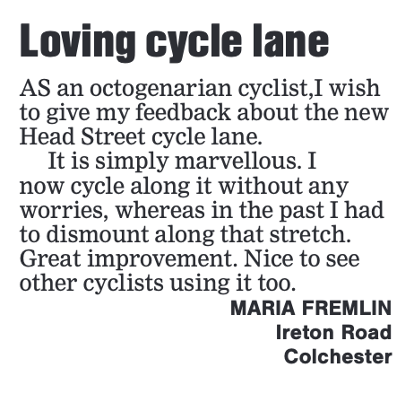 We think that, given the limited funds available, this is an improvement we should all support. While Colchester's cycleways are being installed piecemeal, each mini-project is a pedal-push in the right direction. It doesn't make campaigning easy though!